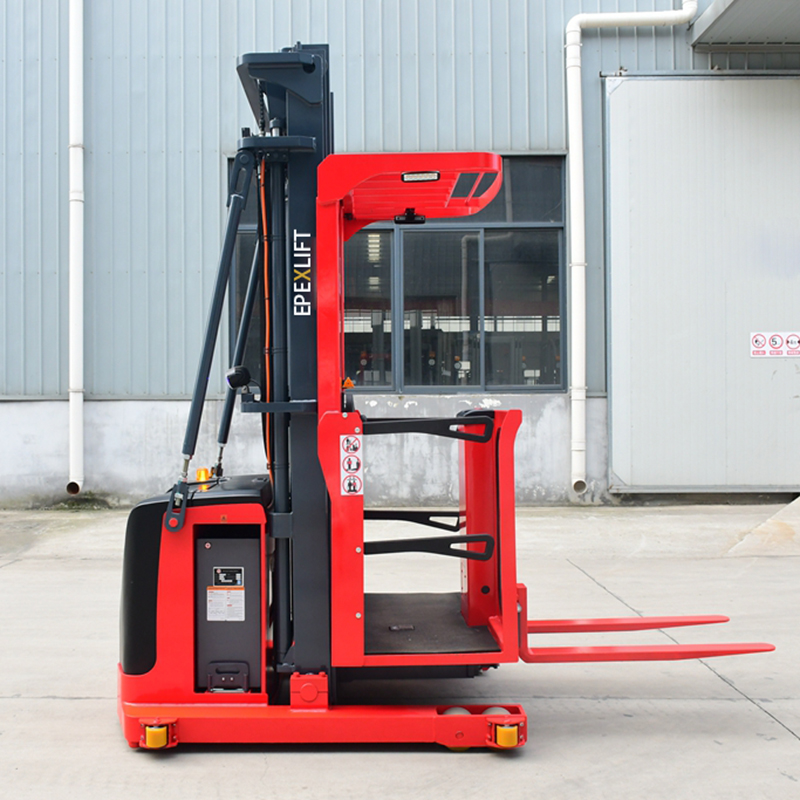 The warehouse order picker truck is primarily used for warehouse material picker jobs, picking up packages from low to mid-level shelves.