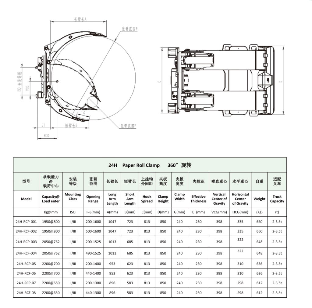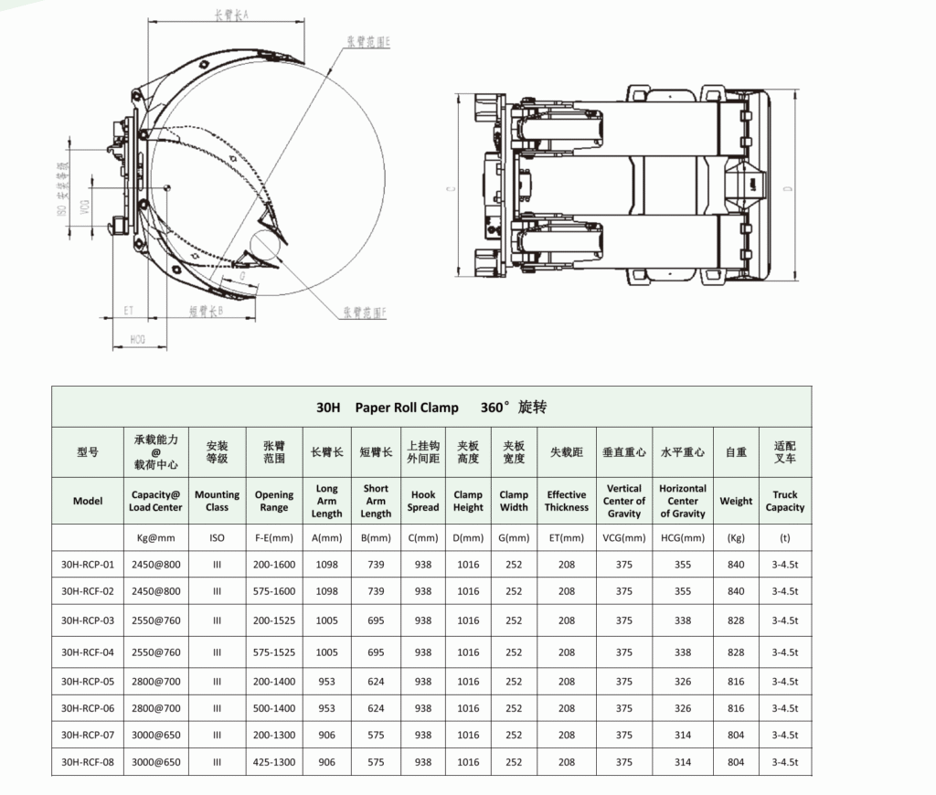 Paper roll clamps are widely used at work sites for handling paper rolls or cylindrical goods, and the vast majority of them are used at work sites with various types of paper rolls. The paper roll clamp can rotate 360° forward and backward to meet the operation requirements of clamping paper rolls or cylindrical goods placed vertically or horizontally.