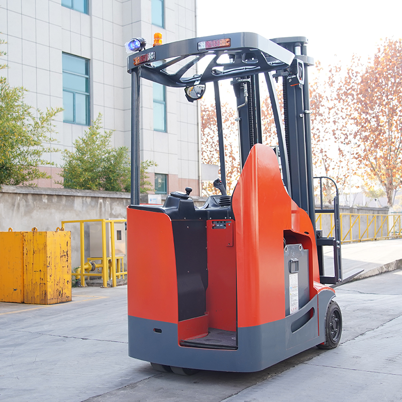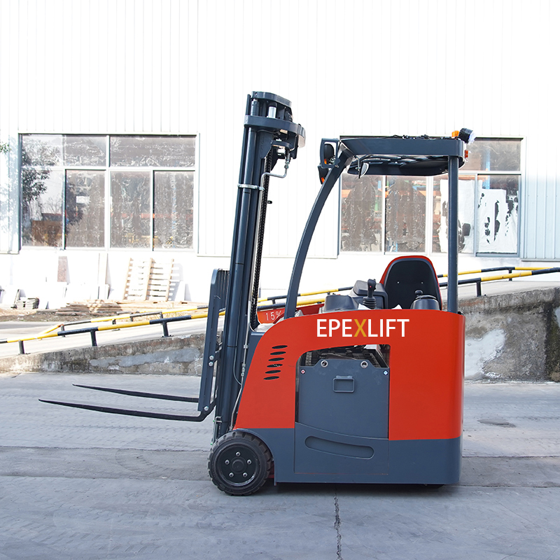 Epexlift three-wheels stand-up electric counterbalance forklift truck E-MN has a high-power motor, a compact design offering VNA adaptability, high travel speed, a large-capacity battery, ergonomic design, and safety features that enhance operation. Integrated handle operation is easier and more convenient.
